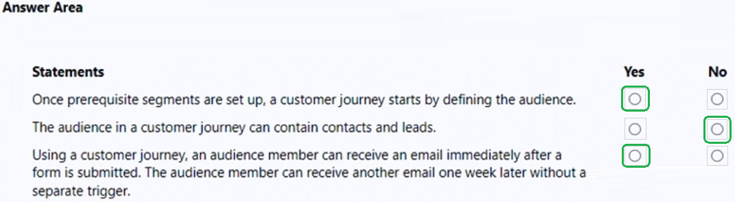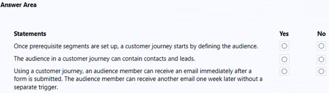 For each of the following statements, select Yes if the statement is true. Otherwise, select No.