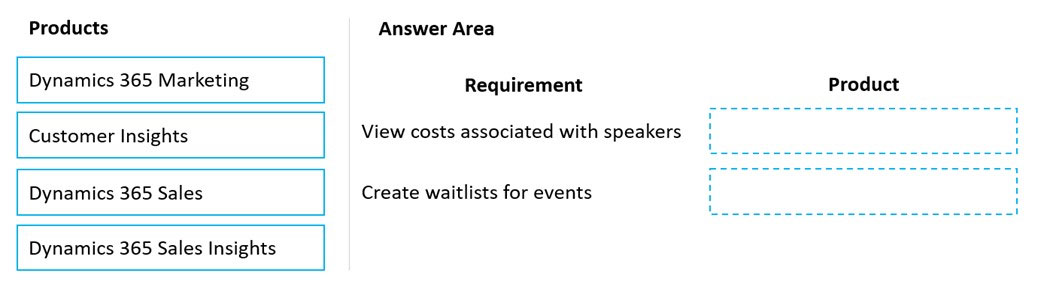 Which products should you recommend? To answer, drag the appropriate products to the correct features. Each product may be used once, more than once, or not at all. You may need to drag the split bar between panes or scroll to view content.