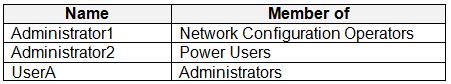 You have a computer named Computer1 that runs Windows 10. Computer1 is in a workgroup and has the local users shown in the following table.