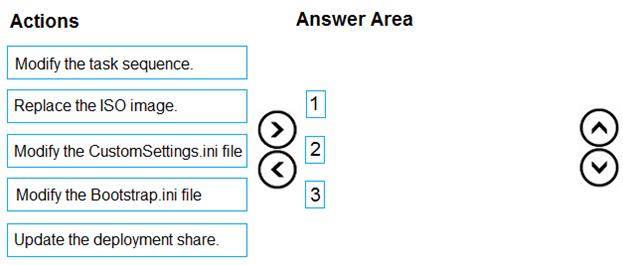 Which three actions should you perform in sequence? To answer, move the appropriate actions from the list of actions to the answer area and arrange them in the correct order.