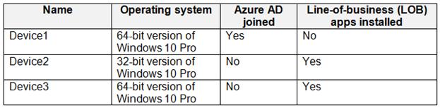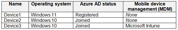 You have an Azure AD tenant named contoso.com that contains the devices shown in the following table.