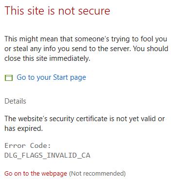 When connecting to Windows Admin Center, you receive the message shown in the following exhibit.