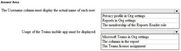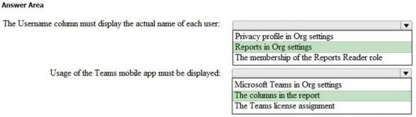 The Username column must display the actual name of each user. Usage of the Microsoft Teams mobile app must be displayed.