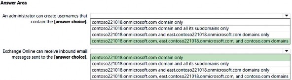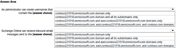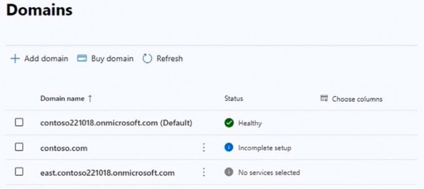Your company has a Microsoft 365 subscription that contains the domains shown in the following exhibit.