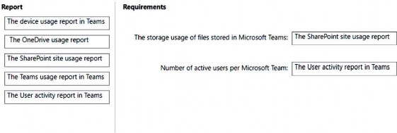 The storage usage of files stored in Microsoft Teams The number of active users per team