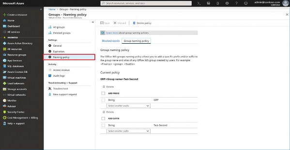 https://learn.microsoft.com/en-us/microsoft-365/solutions/groups-naming-policy https://learn.microsoft.com/en-us/azure/active-directory/enterprise-users/groups-naming-policy