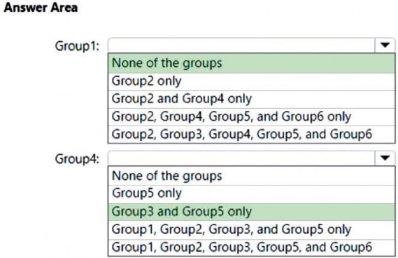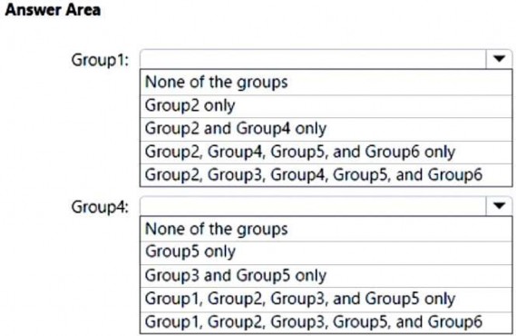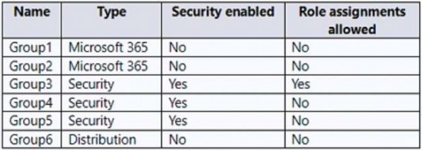 You have a Microsoft 365 E5 subscription that contains the groups shown in the following table.