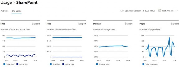 https://learn.microsoft.com/en-us/microsoft-365/admin/activity-reports/sharepoint-site-usage-ww https://learn.microsoft.com/en-us/microsoft-365/admin/activity-reports/microsoft-teams-user-activity-preview
