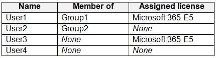You have a Microsoft 365 E5 subscription that contains the users shown in the following table.
