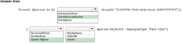 You plan to update the EmployeeType attribute for all the users in a group named Contractors. You retrieve the GroupId value of the Contractors group.