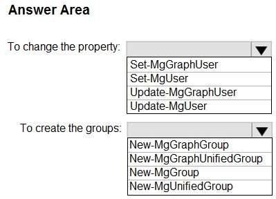Box 2: Update-MgUser Microsoft.Graph.Users