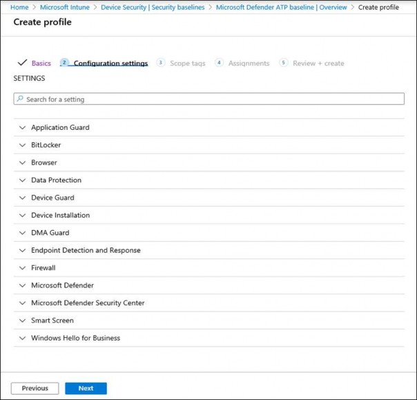 Review and assign the Microsoft Defender for Endpoint security baseline