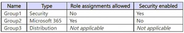 You have a Microsoft 365 E5 subscription that contains the groups shown in the following table.