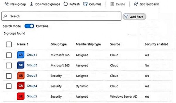You have a Microsoft Entra tenant that contains the groups shown in the following exhibit.
