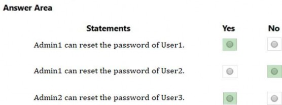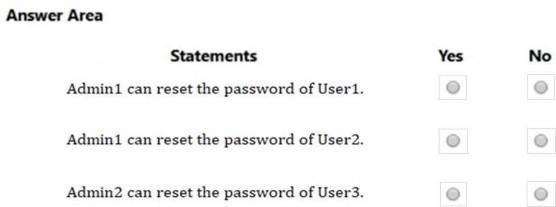 He can reset the password of User1 only, but not of User2. Box 2: No