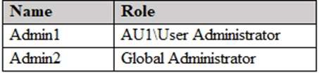 AU1 will contain User1 only as he is in an engineering department and he is not an executive. Admin1 is administrator for AU1 only.