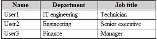 You create a new administrative unit named AU1 and configure the following AU1 dynamic membership rule. (user.department -eq "Engineering") and (user.jobTitle -notContains "Executive") The subscription contains the role assignments shown in the following table.