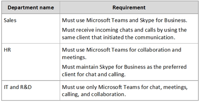 Litware identifies the following requirements for a planned upgrade from Skype for Business Online to Microsoft Teams: