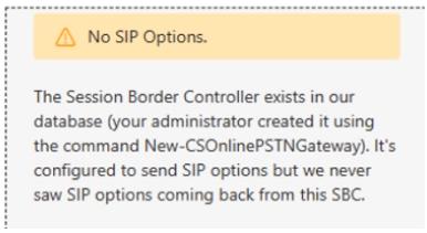 When troubleshooting errors on the SBC, you receive the warning shown in the following exhibit.