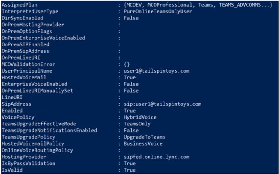You run the Get-CsOnlineUser cmdlet and receive the output shown in the exhibit. (Click the Exhibit tab.)