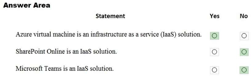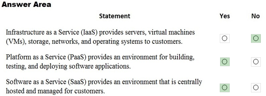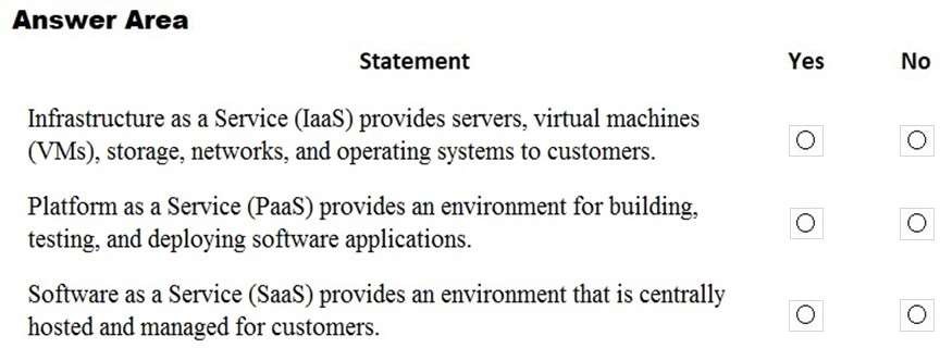 For each of the following statements, select Yes if the statement is true. Otherwise, select No.