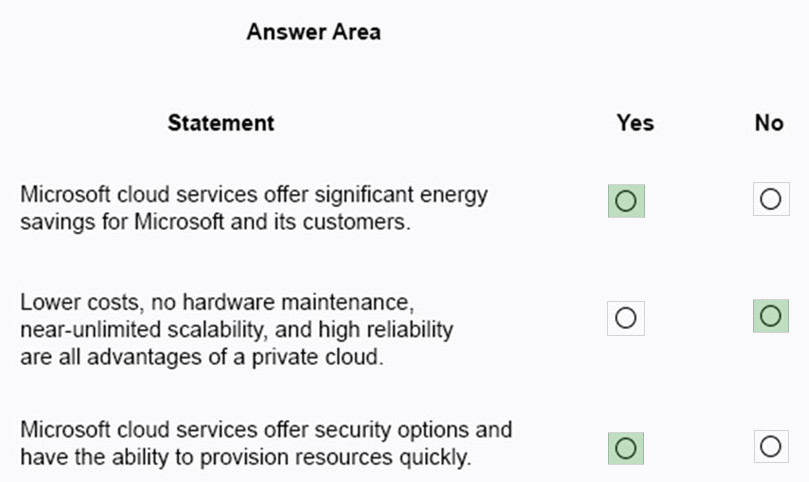For each of the following statements, select Yes if the statement is true. Otherwise, select No.
