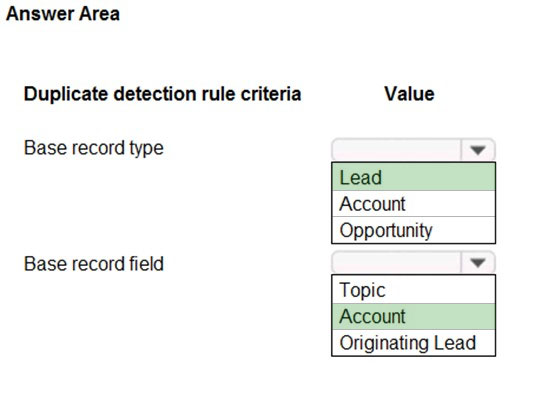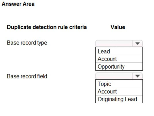 How can you use duplicate detection rules to achieve this goal? To answer, select the appropriate options in the answer area.