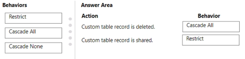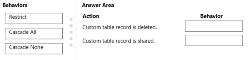 Which behavior should you use? To answer, drag the appropriate behaviors to the correct actions. Each behavior may be used once, more than once, or not at all. You may need to