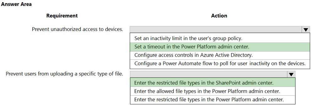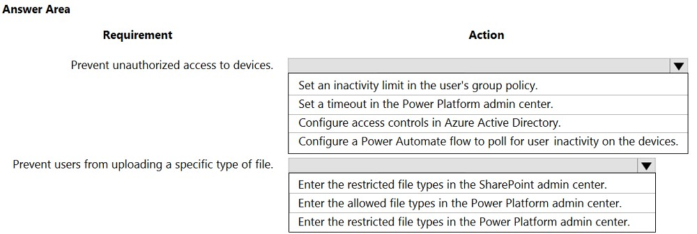 A company deploys several model-driven apps. The company uses shared devices in their warehouse. The devices are always powered on. Users log on to the devices and then launch the apps to perform actions.