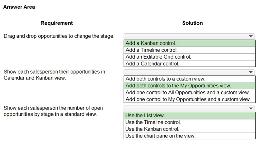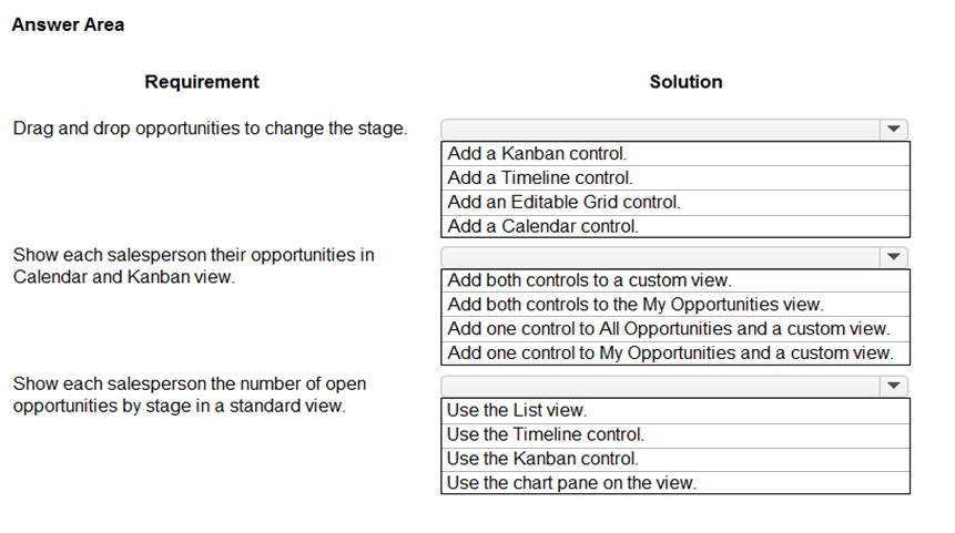 -Kanban views help salespeople to manage their opportunities and activities effectively. Add the Kanban control to the Opportunity and Activity entity so salespeople can use the Kanban views.