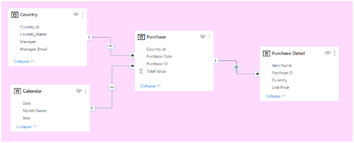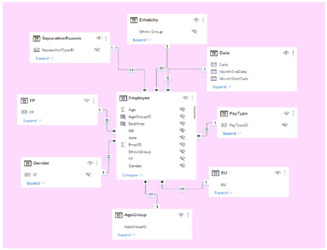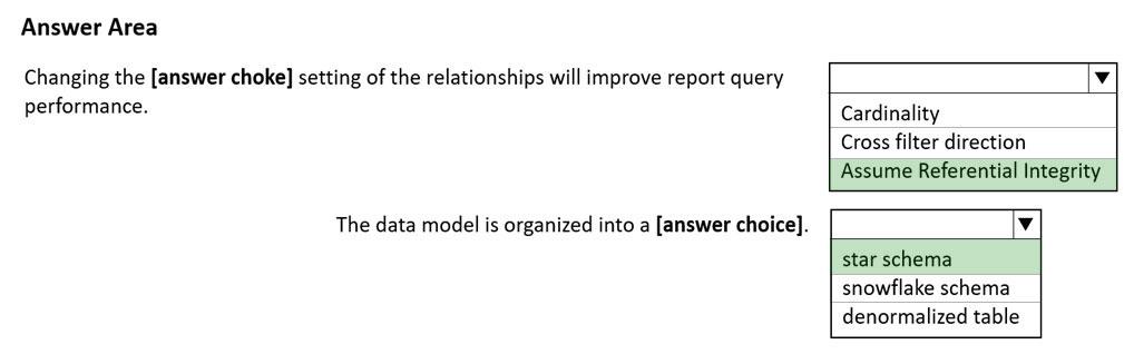 You have a Power BI imported dataset that contains the data model shown in the following exhibit.