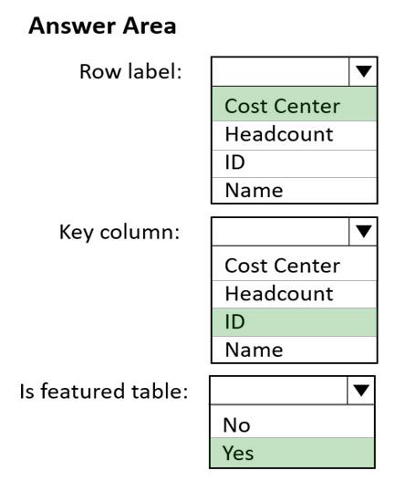 How should you configure the properties of the table? To answer, select the appropriate options in the answer area.
