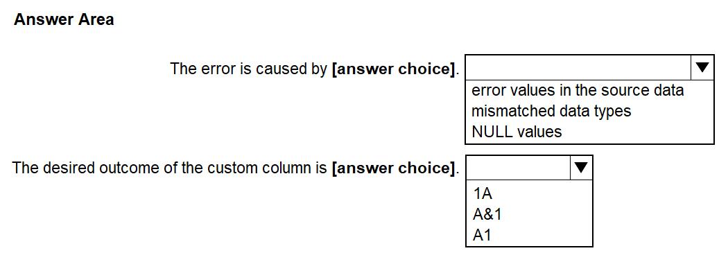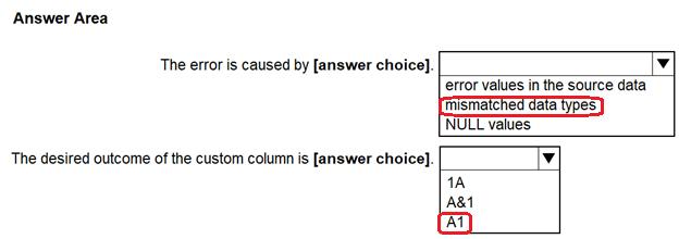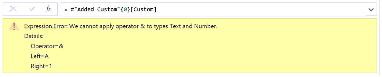 You attempt to use Power Query Editor to create a custom column and receive the error message shown in the following exhibit.