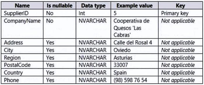 How should you configure the properties of the table? To answer, select the appropriate options in the answer area.