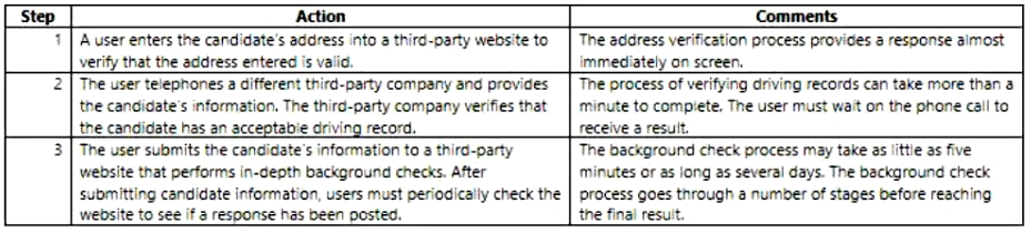 Each of the third-party services charge per result. Northwind wants to perform the background check processes only when necessary to minimize costs.