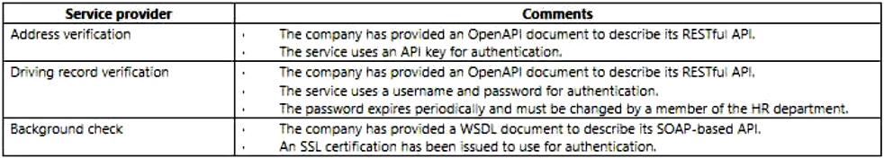 Each of the third-party services has an API available. Northwind wants to automate the verification process by calling the APIs from a Microsoft Power Platform solution.
