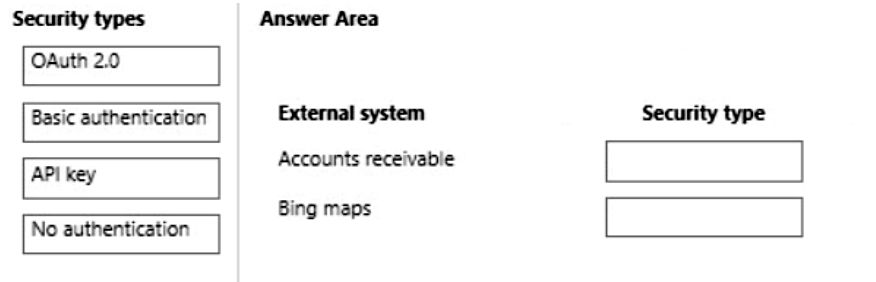 You are creating various Power Apps apps for a company. Power Automate flows must connect securely to the following external systems: