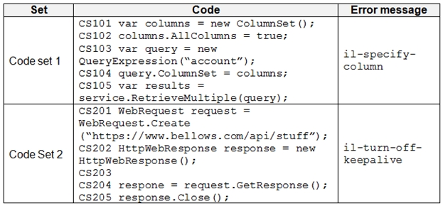 You run solution checker and observe Plug-in or workflow activity errors in the following code sets: