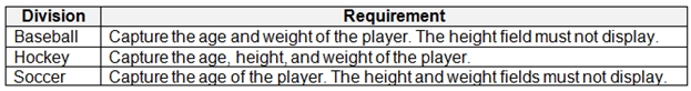 You must create a form to allow players to register for tournaments. The registration form must meet the following requirements: