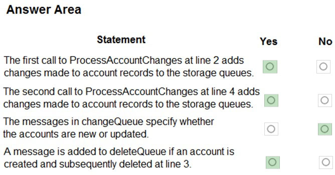 A company must copy customer account data changes from a Microsoft Dataverse instance into an external system. Azure Storage Queues are used to pass the changes from Dataverse to the external system.