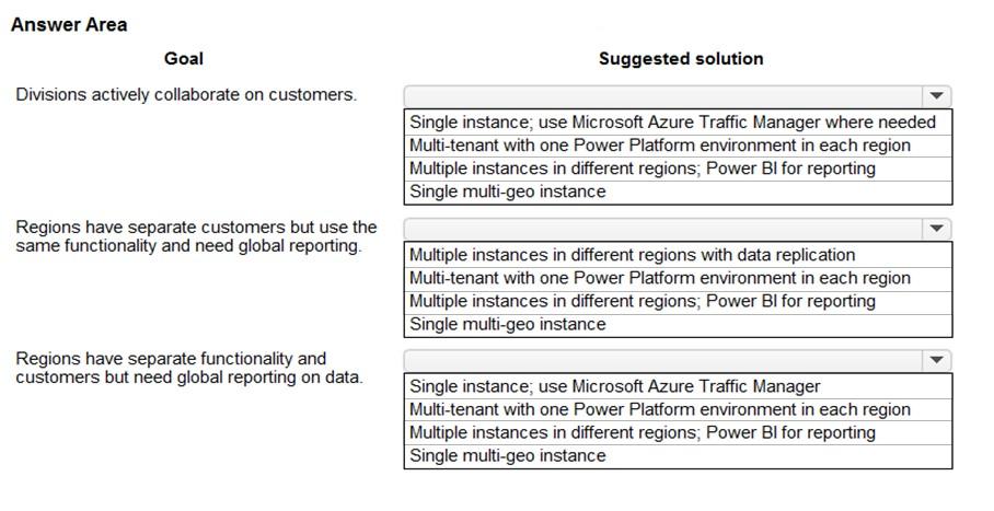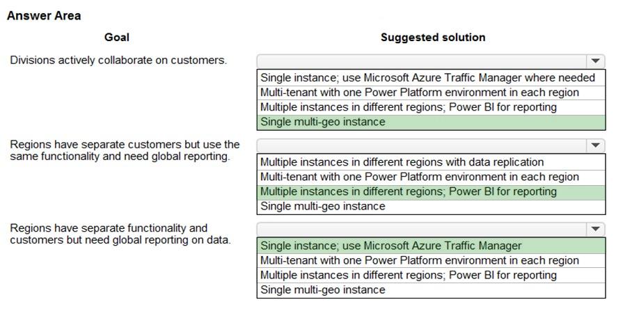 Box 2: Multiple instances in different regions; Power BI for reporting