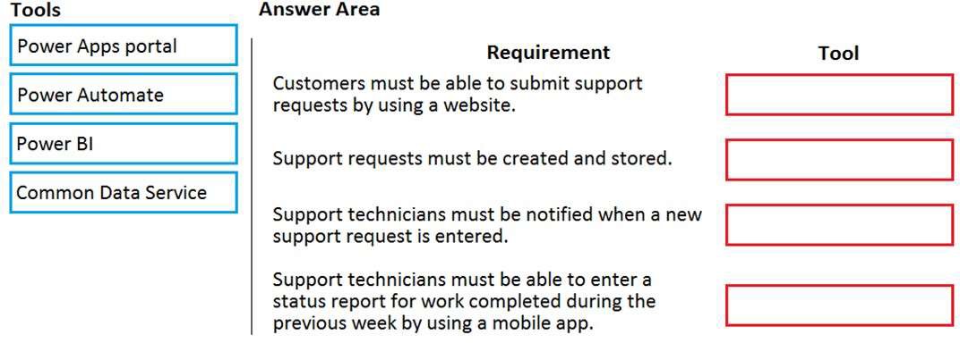 Which tools should you recommend? To answer, drag the appropriate tools to the correct requirements. Each tool may be used once, more than once, or not at all. You may need to drag the split bar between panes or scroll to view content.