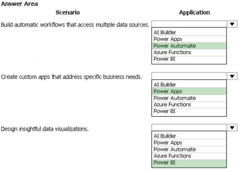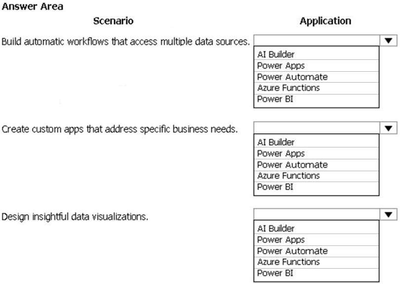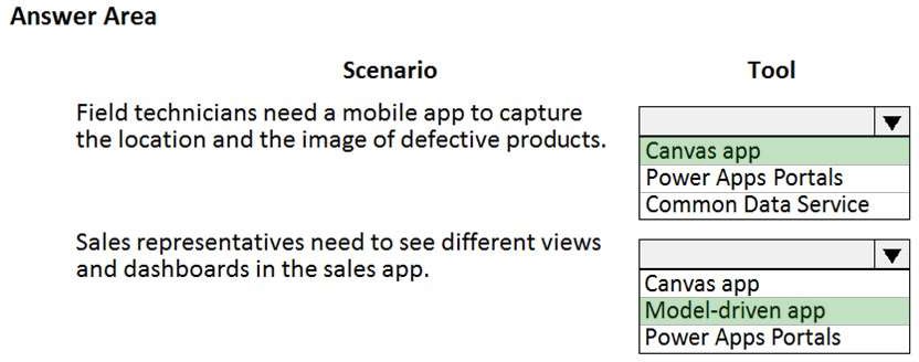 A company plans to use Power Platform to build apps which address specific business challenges. You need to recommend the appropriate types of Power Apps to use.