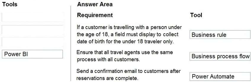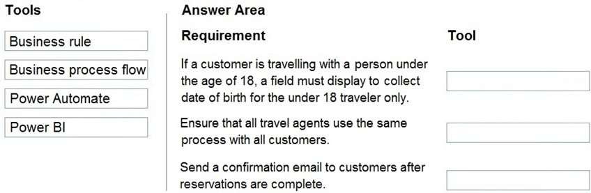 A travel company plans to use the Power Platform to create tools that help travel agents book customer travel. You need to recommend solutions for the company.