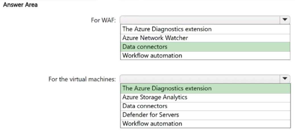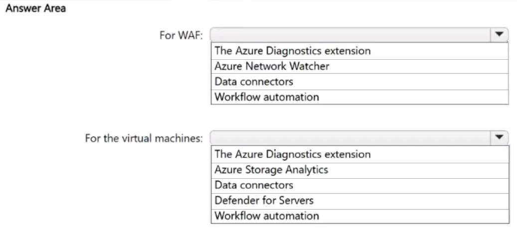 https://docs.microsoft.com/en-us/azure/web-application-firewall/waf-sentinel https://docs.microsoft.com/en-us/azure/defender-for-cloud/enable-data-collection https://docs.microsoft.com/en-us/azure/azure-monitor/agents/agents-overview https://learn.microsoft.com/en-us/azure/azure-monitor/agents/diagnostics-extension-overview