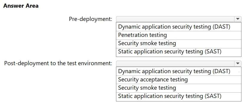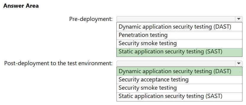 All the source code must be tested for security vulnerabilities in Azure Repos before deploying the apps.