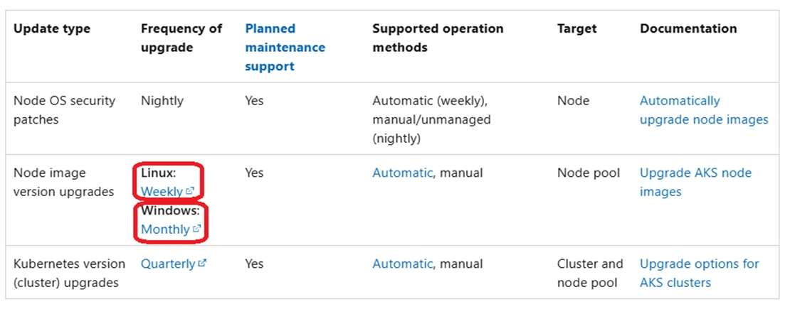 Note: Azure Kubernetes Service patch and upgrade guidance
