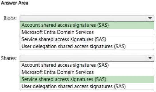 You need to recommend a security solution for authorizing access to the blobs and shares. The solution must meet the following requirements: