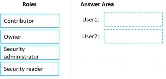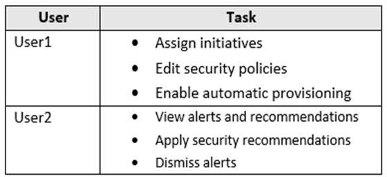 You need to enable User1 and User2 to perform tasks at the subscription level as shown in the following table.