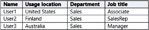 You have an Azure Active Directory (Azure AD) tenant that contains the users shown in the following table.
